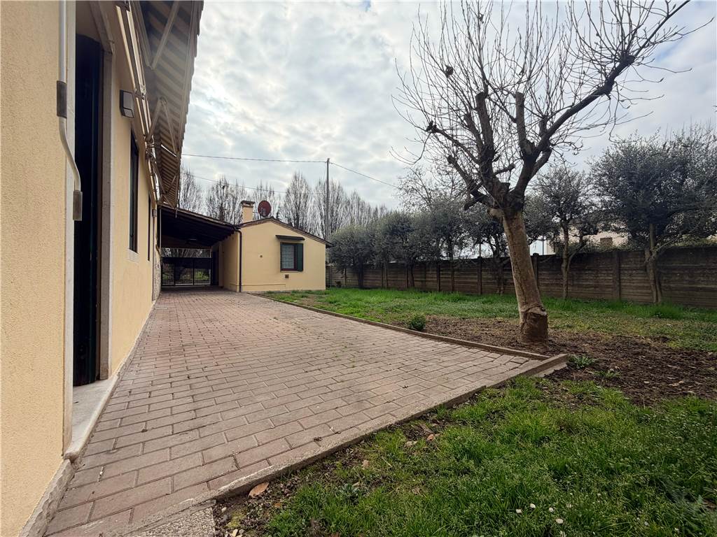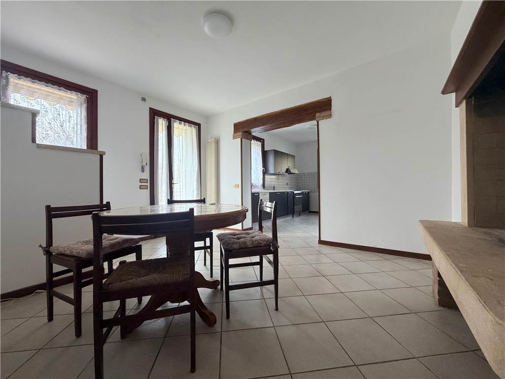 Available for rent: a detached single-family home in Colzè, featuring a private, fully fenced garden and automated vehicle entrance. The property includes a covered parking porch for multiple cars, a small external annex (dependance) equipped with a fireplace making it the perfect spot for an authentic "Italian taverna", and a handy tool shed tucked away in the back.